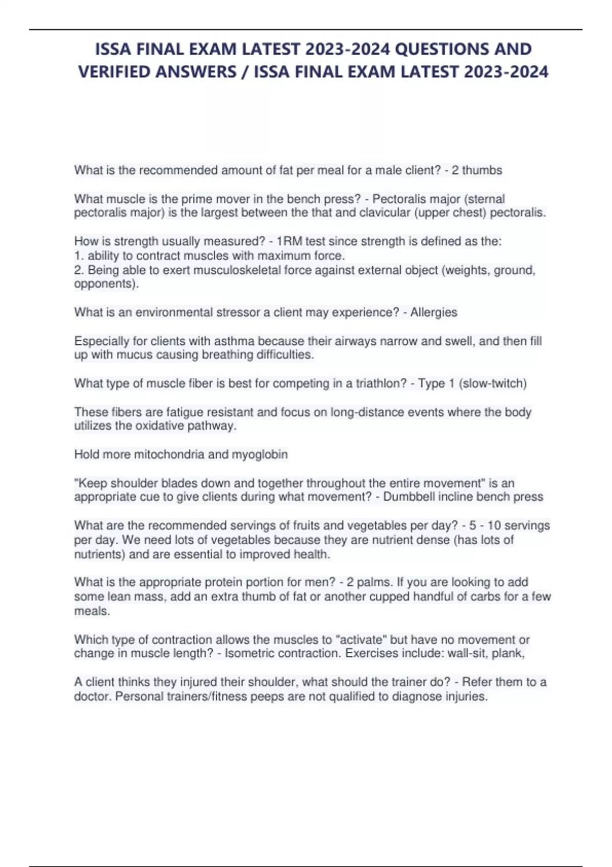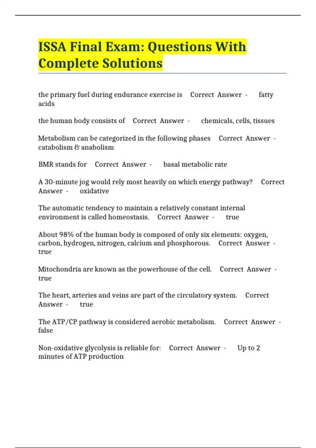 Study with quizlet and memorize flashcards containing terms like vitamins, micronutrients nutrition of vitamins, vitamin a and more. Prevent resits and get higher grades by finding the best revision notes & resources available, written by your fellow students at issa final exam all answers 100%.